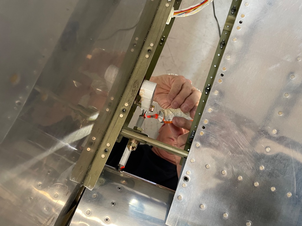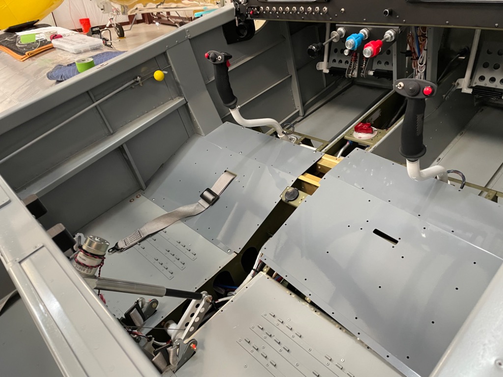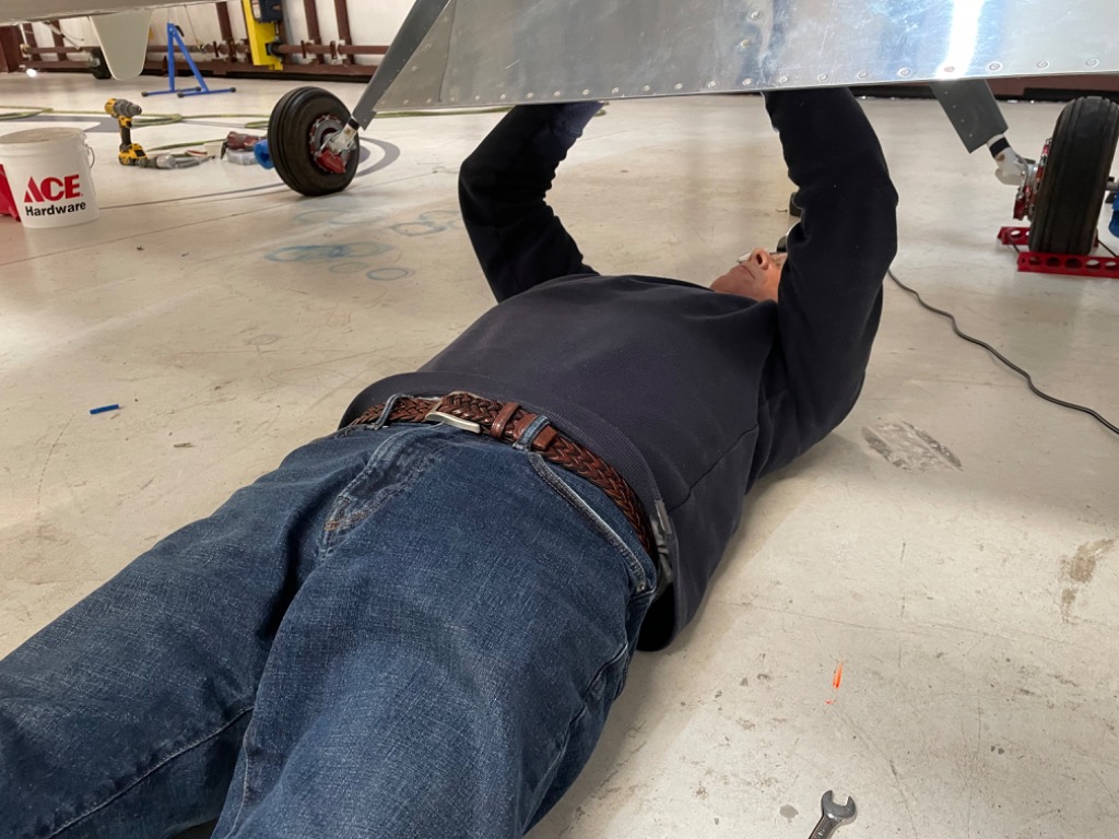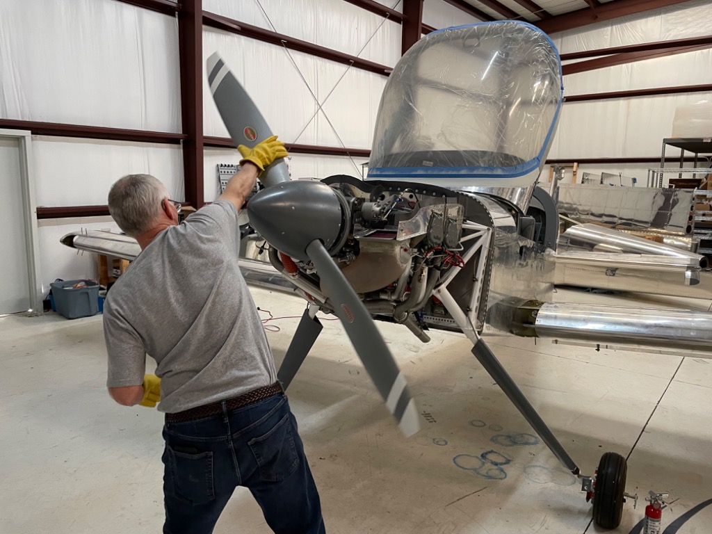 Continued landing light installation. Finished right flap installation. Temporarily installed left and right seat pans and seats. Added oil to engine. Checked oil pressure. Added fuel to left and right fuel tanks. Tested fuel flow. Successful engine start. Adjusted low end throttle.