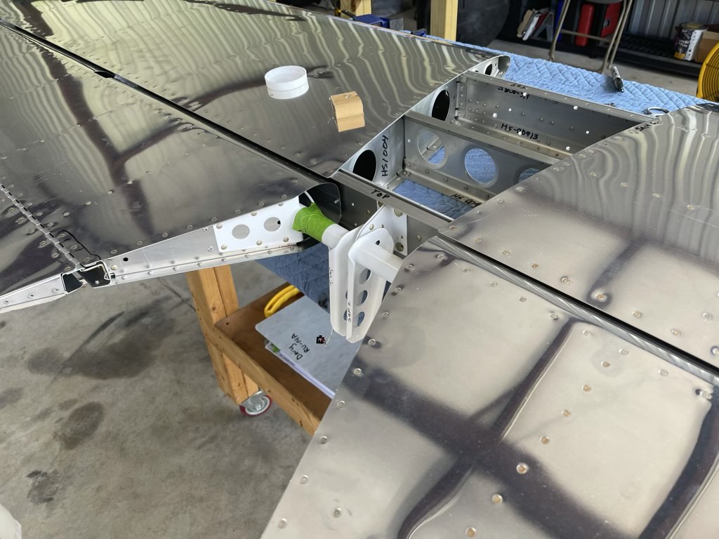 Fit elevators to horizontal stabilizer. Drilled holes in elevator horn