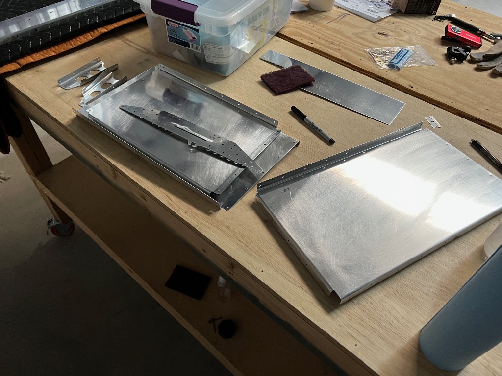 Fabricated flap bearing blocks. Fabricated seat back hinges. Prepped baggage parts for priming.