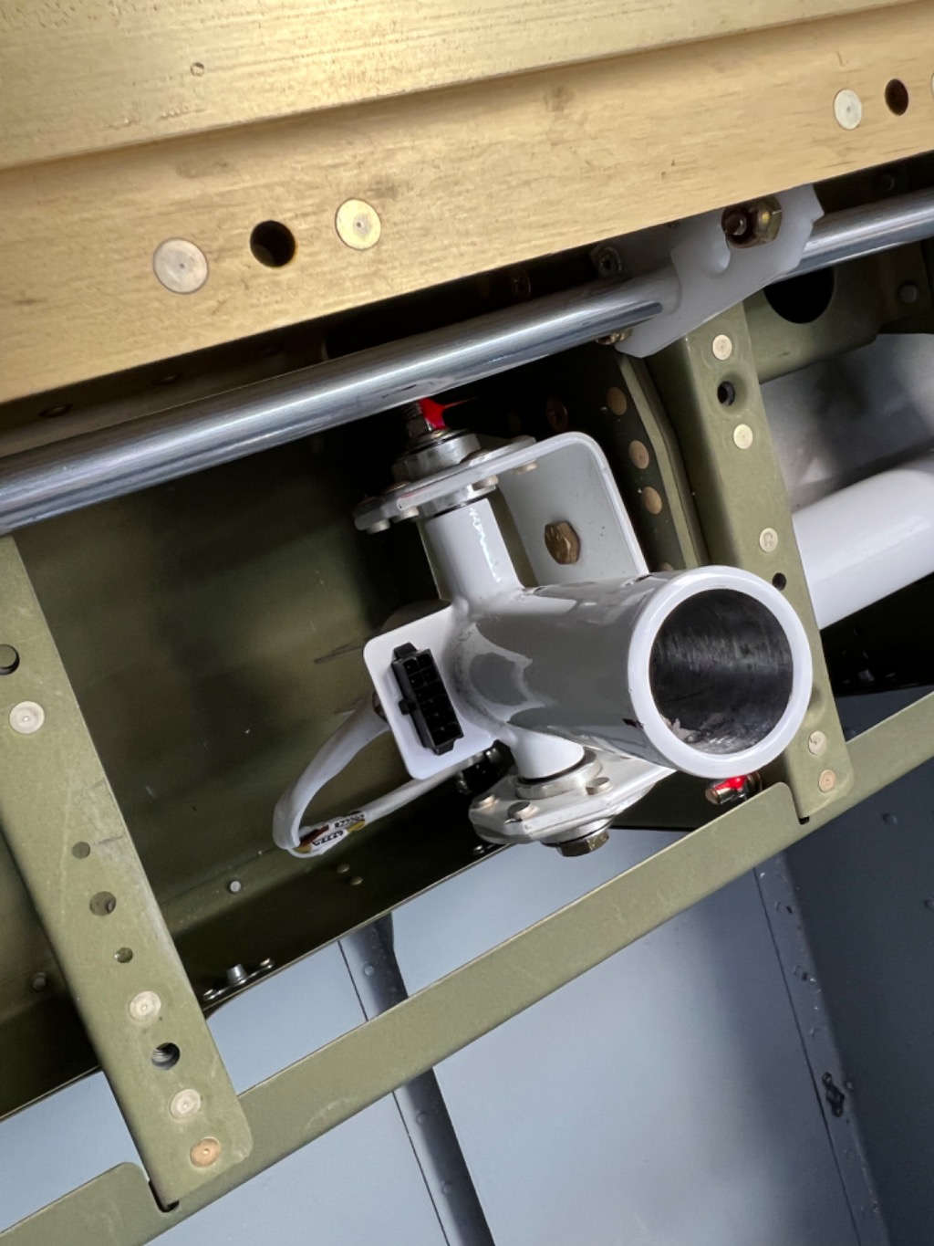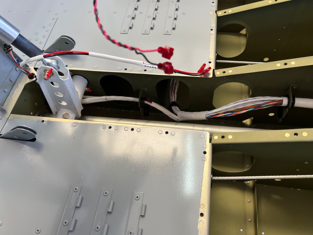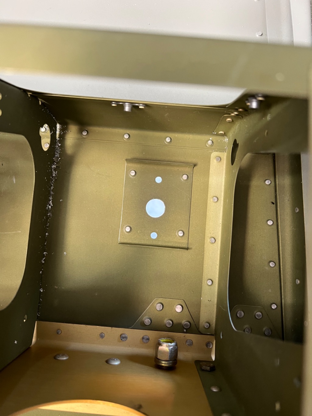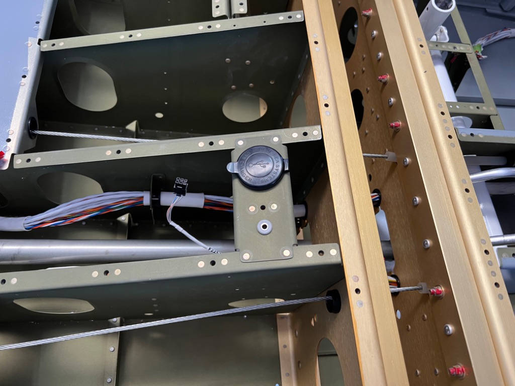 Finished installing fuselage wire harness. Drilled hole for COM antenna. Installed right control stick housing.