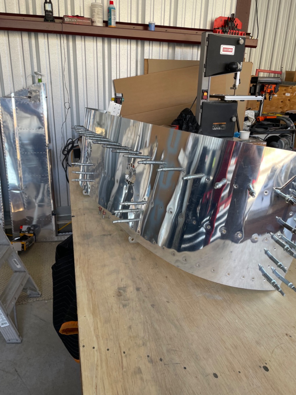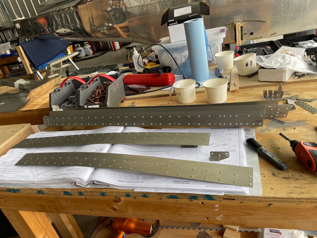 Dimpled and contersunk canopy skin and side rails. Began riveting canopy structure together.