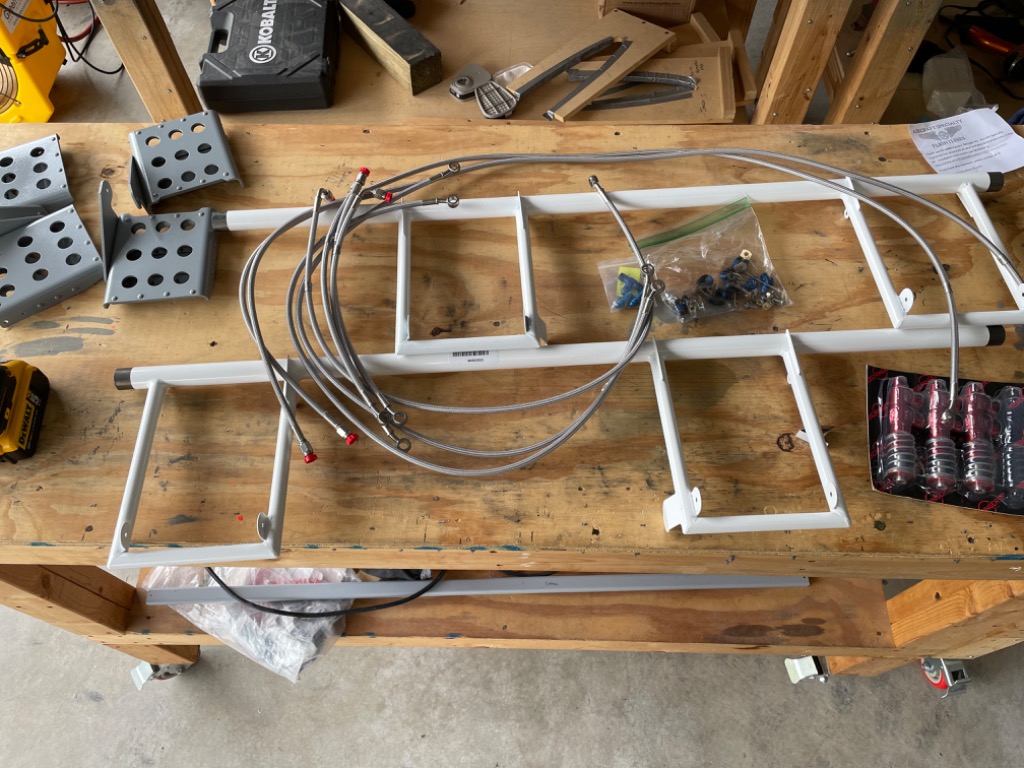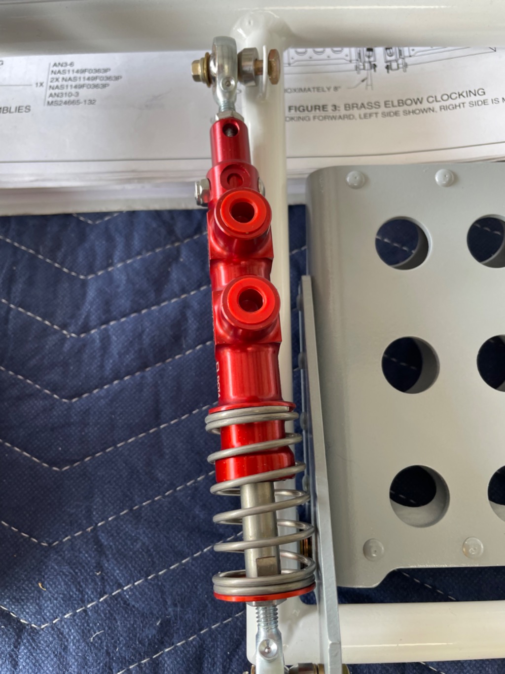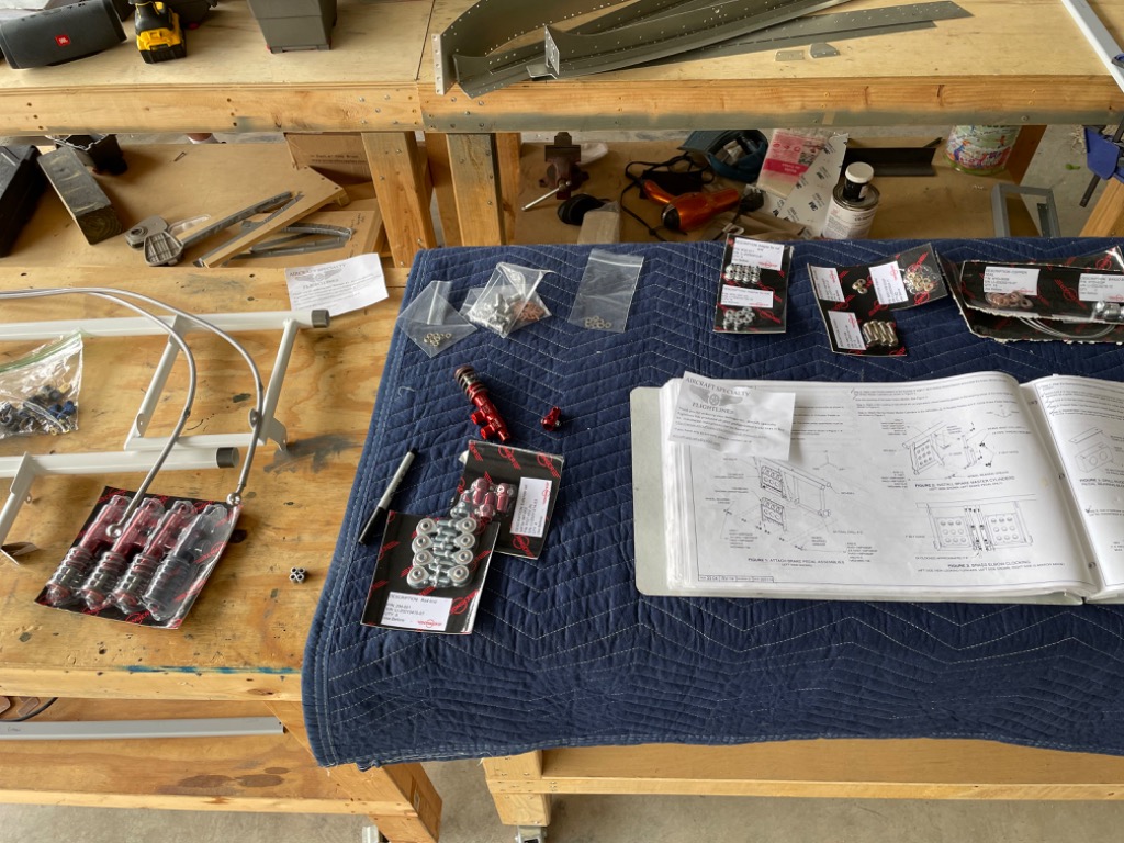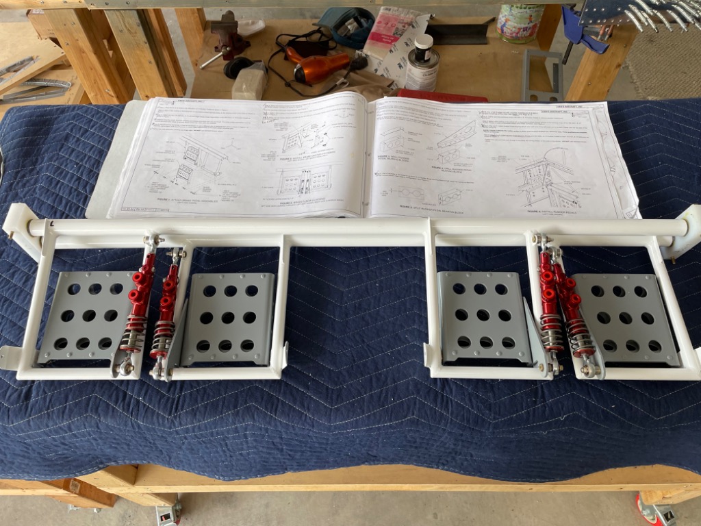 Assembled Beringer brake cylinders. Bolted cylinders to rudder pedals. Bolted rudder pedals to fuselage.