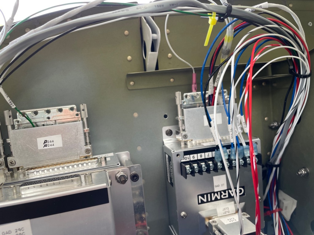 Connected configure module to GNX. Wired power to GNX. Wired power to GTR200. Tested power connections to all Garmin components. Started Canbus wiring to GMU11, GAD27, GEA24, and Pitch servo.