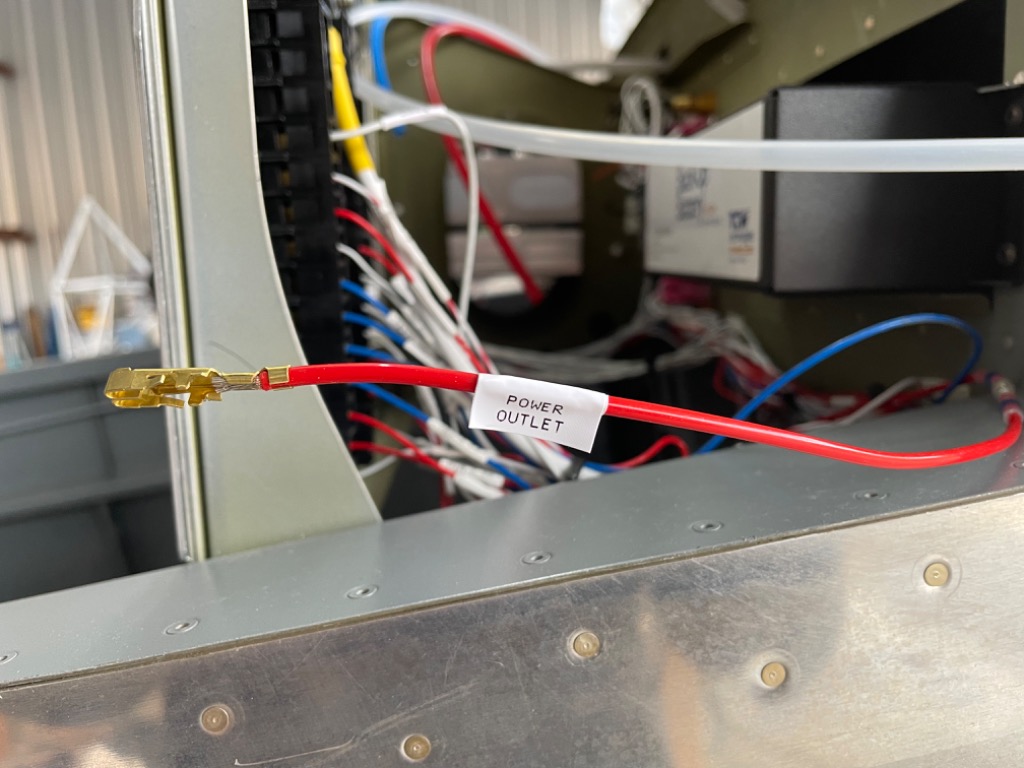Wired power outlet, navigation lights, strobe lights, roll servo, and trim servo.