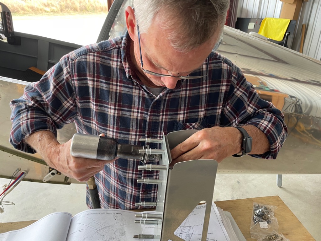 Started assembly of cowl flap. Installed needed nut plates to fuselage. Installed fuel pump overflow tube.