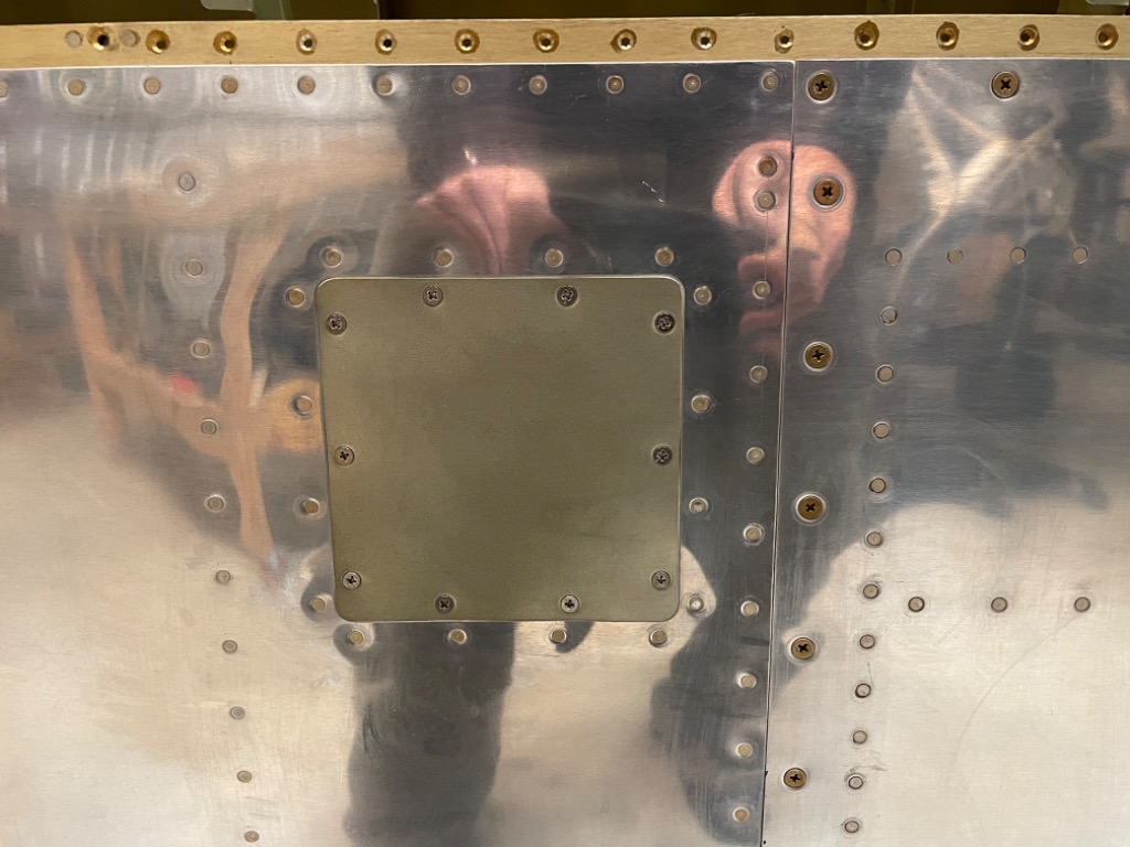 Finished riveting nut plates on parts. Riveted inspection hole backing plate.