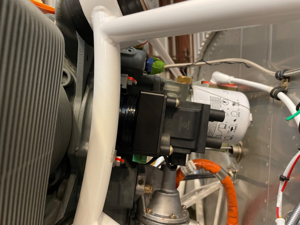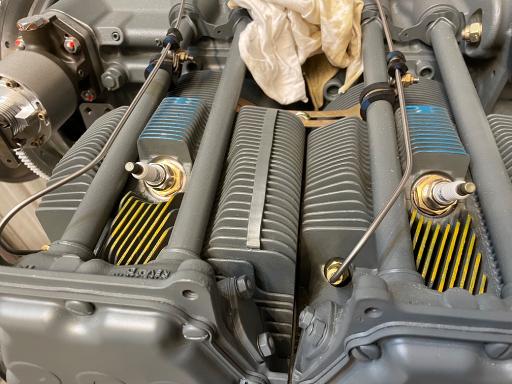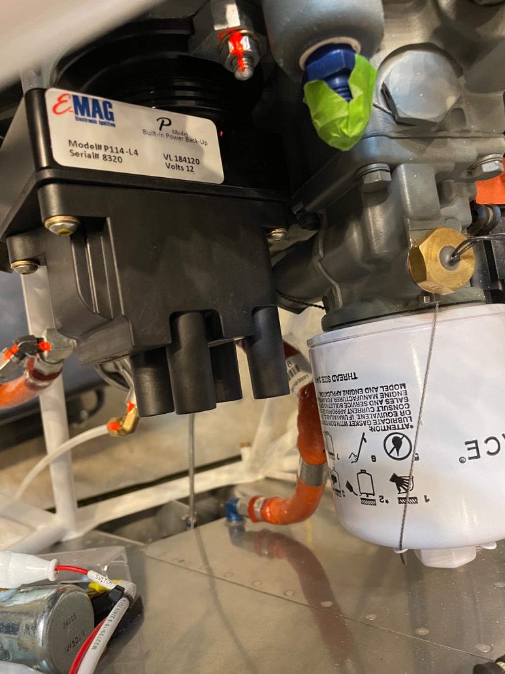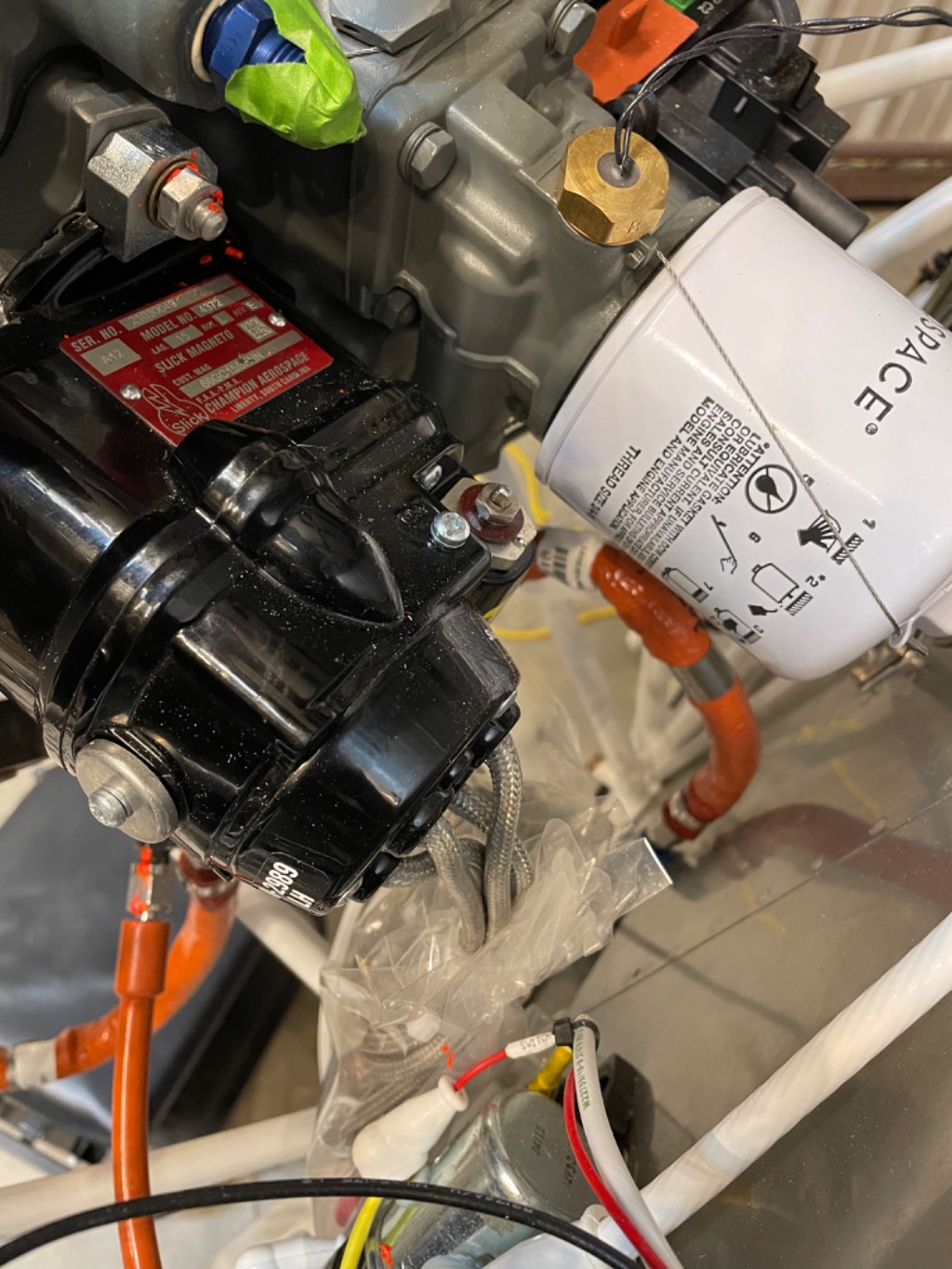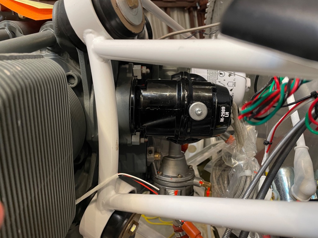 Installed throttle and mixture cable bracket. Install sniffle valve. Remove magneto and replace it with and EMag. Remove aircraft spark plugs and replaced with automotive type. Installed starter wire.