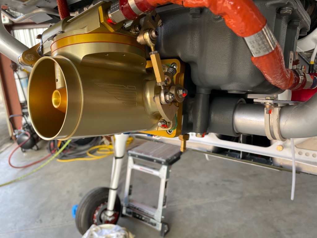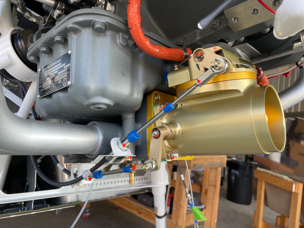 Installed fuel servo. Connected fuel lines and control cables.