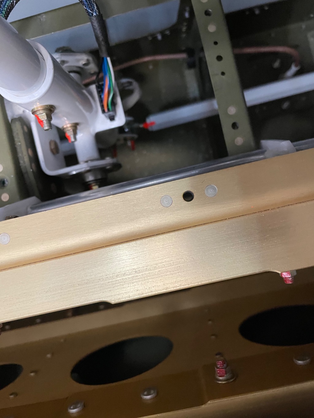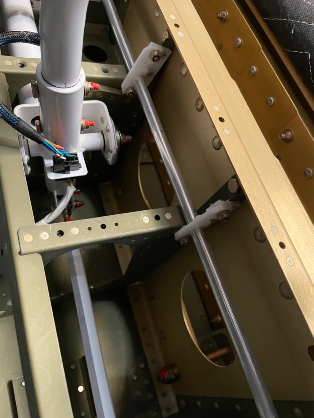 Finished aileron pushrods and tested operation. Started landing light installation. Worked on empennage and wing root fairings.